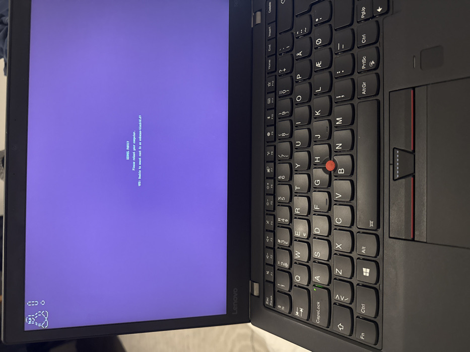 - "An eye-level, close-up shot depicts a black Lenovo laptop displaying a "KERNEL PANIC!" error" by FM-6Mjbf2, licensed under CC BY 4.0