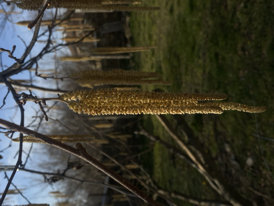 - "This image captures a close-up of several yellow-brown hazel (Corylus) catkins hanging from bare branches of a deciduous tree in Dobri dial, Bulgaria" by FM-PFEbq2, licensed under CC BY 4.0