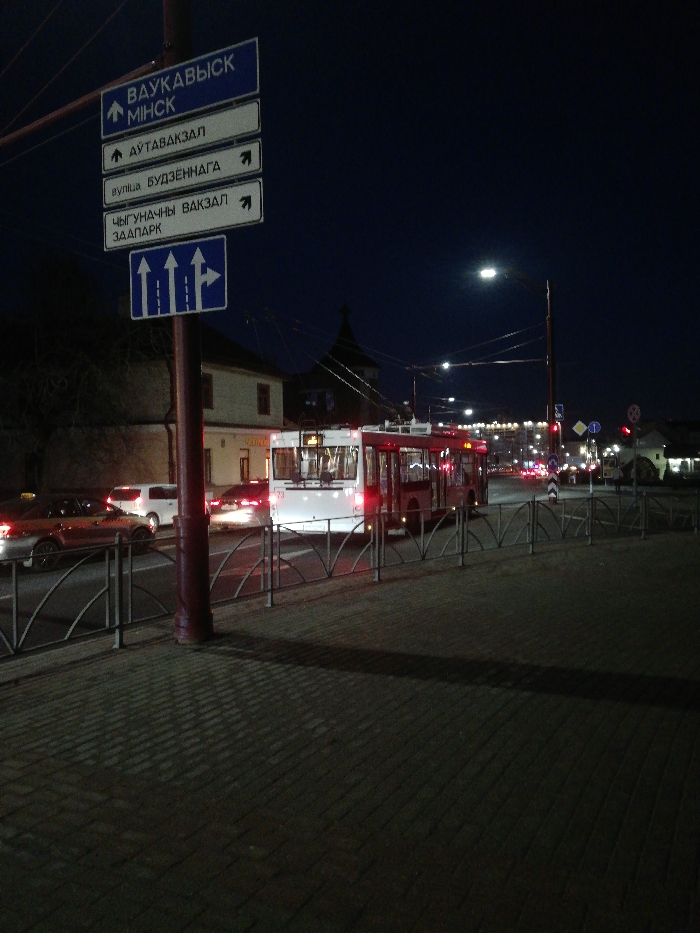 - "The scene depicts an urban street in Hrodna, Belarus, at night, specifically near the intersection of vulitsa Budzyonnaga, identified by a street sign and the distinct turreted building of the Hrodna Regional Drama Theater visible in the background" by FM-HgjJi1, licensed under CC BY 4.0