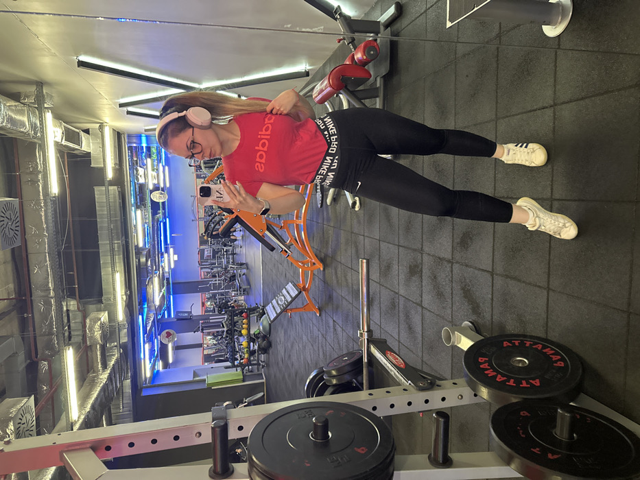 A female subject is depicted taking a mirror selfie within a gym in Stara Zagora, Bulgaria