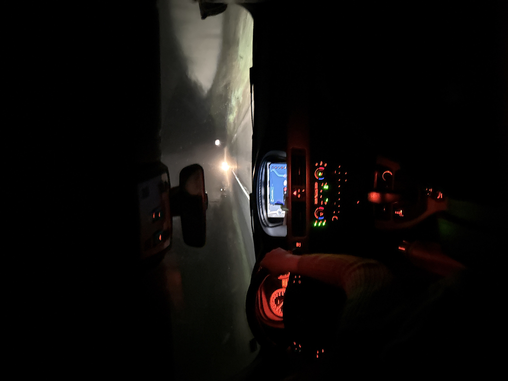 interior of a vehicle at night, possibly in Dyuni, Bulgaria