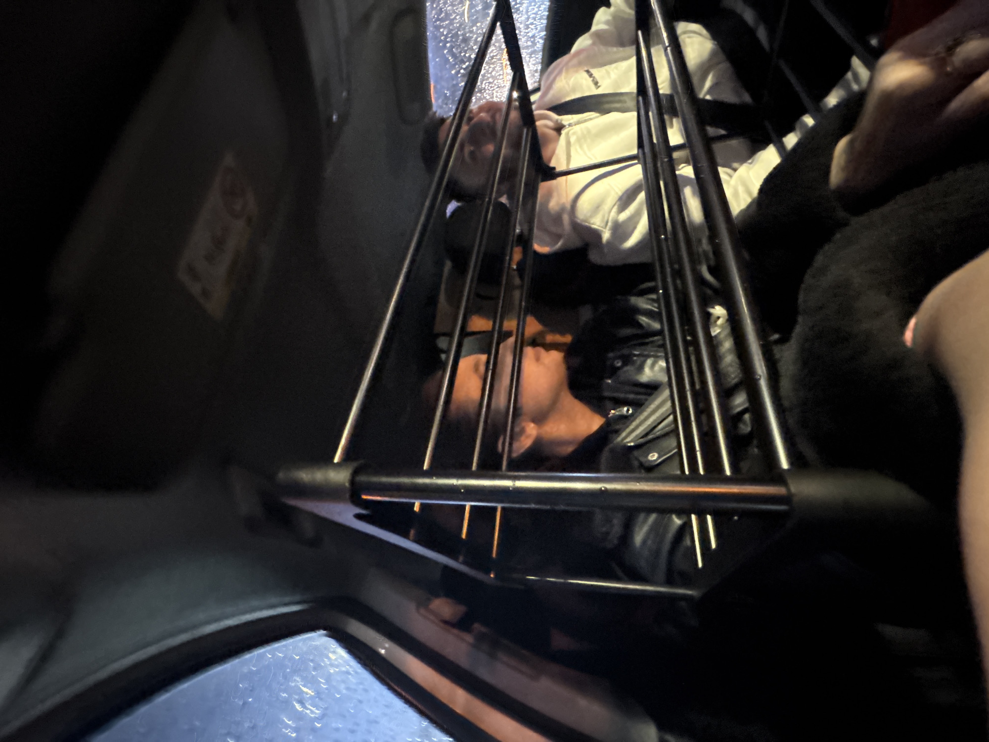 The image, likely taken inside a vehicle, possibly a taxi, depicts two individuals