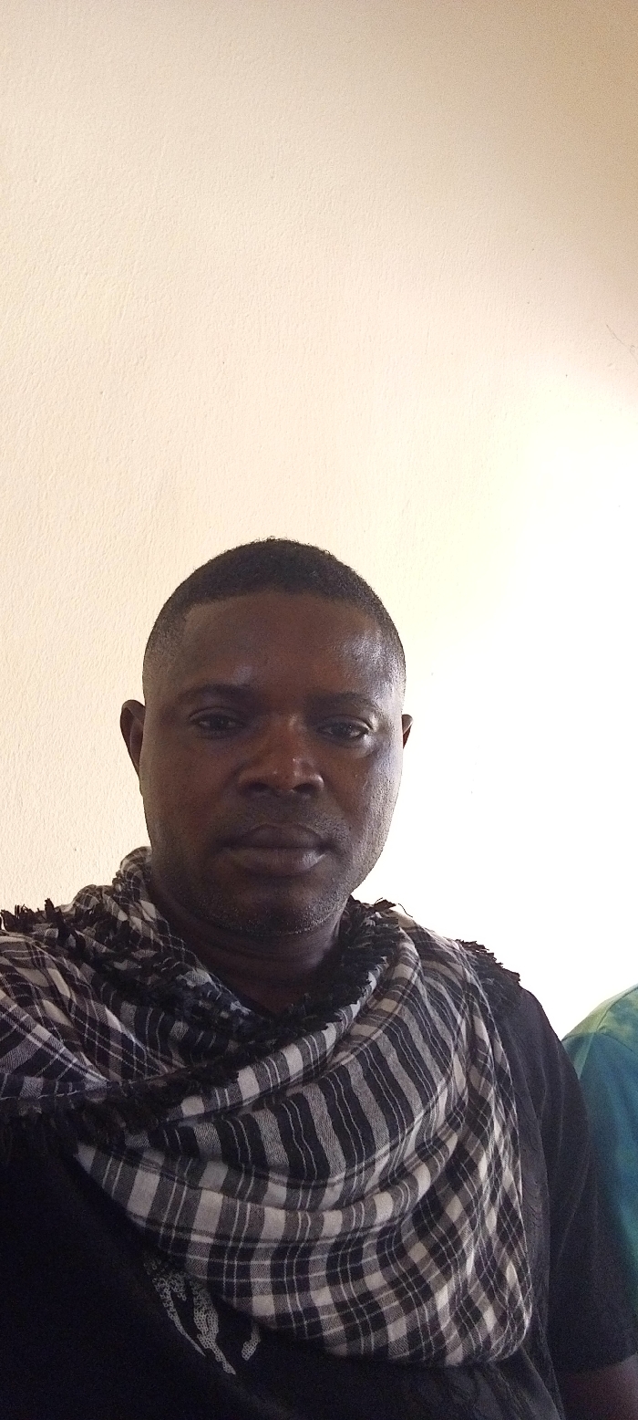 A dark-skinned man with a close-cropped haircut gazes directly at the camera