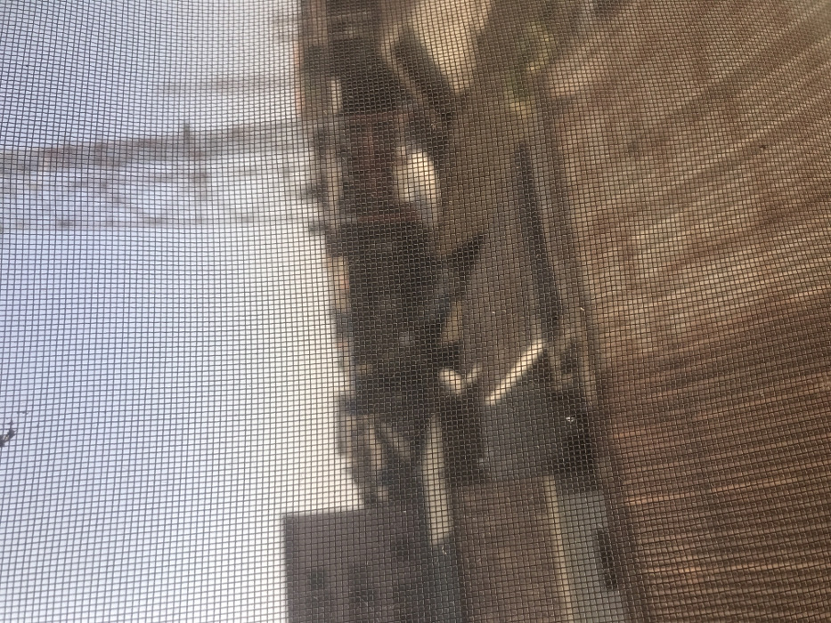 - "The image depicts an outdoor urban environment in Dadi Riba, Nigeria, viewed through a dark, fine-mesh screen, likely a window screen, which uniformly covers the entire frame and partially obscures the background" by FM-W46Hj1, licensed under CC BY 4.0