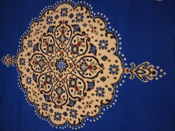 - "The image displays a close-up, top-down view of a patterned textile floor covering, specifically a carpet or rug" by FM-yER7B2, licensed under CC BY 4.0