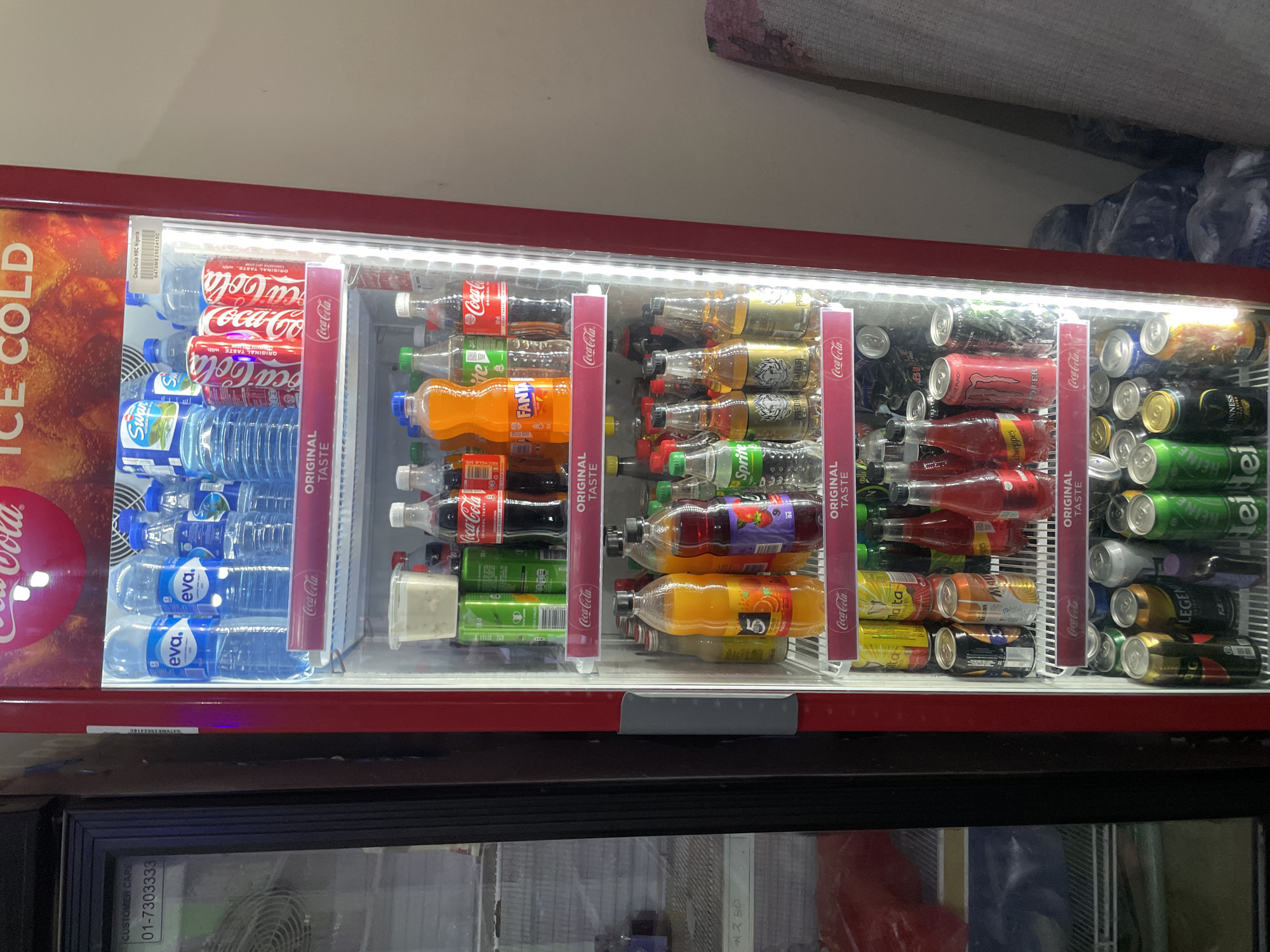 refrigerated display case stocked with various beverages