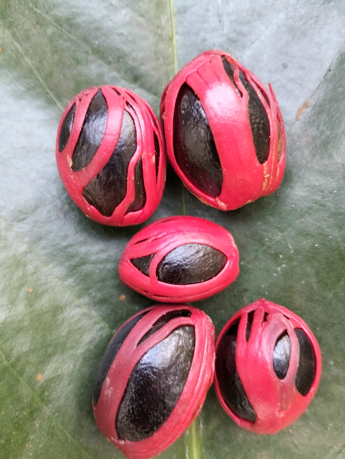 - "A close-up, top-down view displays five distinct nutmeg fruits" by FM-sAcf03, licensed under CC BY 4.0