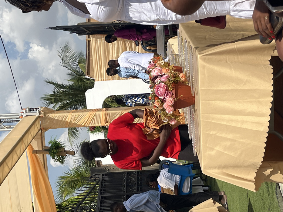 An outdoor event setting in Kumasi, Ghana, is depicted under a light-colored fabric canopy