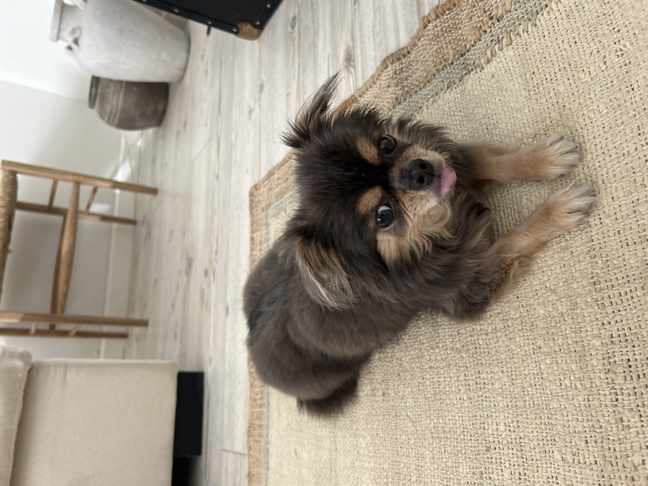 - "This image depicts an indoor residential scene in Holon, Israel, focused on a small, long-haired dog" by FM-u366Z2, licensed under CC BY 4.0