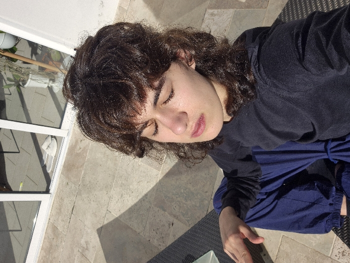 - "The scene depicts an individual seated outdoors on a light-colored tiled patio or balcony, presumed to be within a private residential property in Châtelaillon-Plage, France" by FM-O7Vkg2, licensed under CC BY 4.0