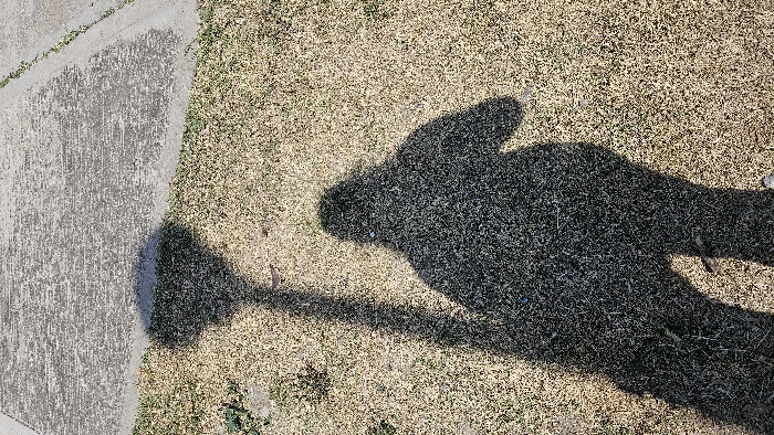 - "A shadow of a person holding an object is cast on dry, patchy grass" by FM-fbKyJ2, licensed under CC BY 4.0