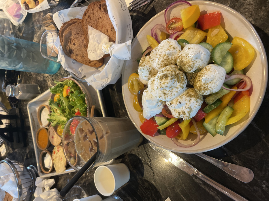 - "The image displays a meal laid out on a dark, polished table within an indoor dining establishment located in Tel Mond, Israel" by FM-AyUtz1, licensed under CC BY 4.0