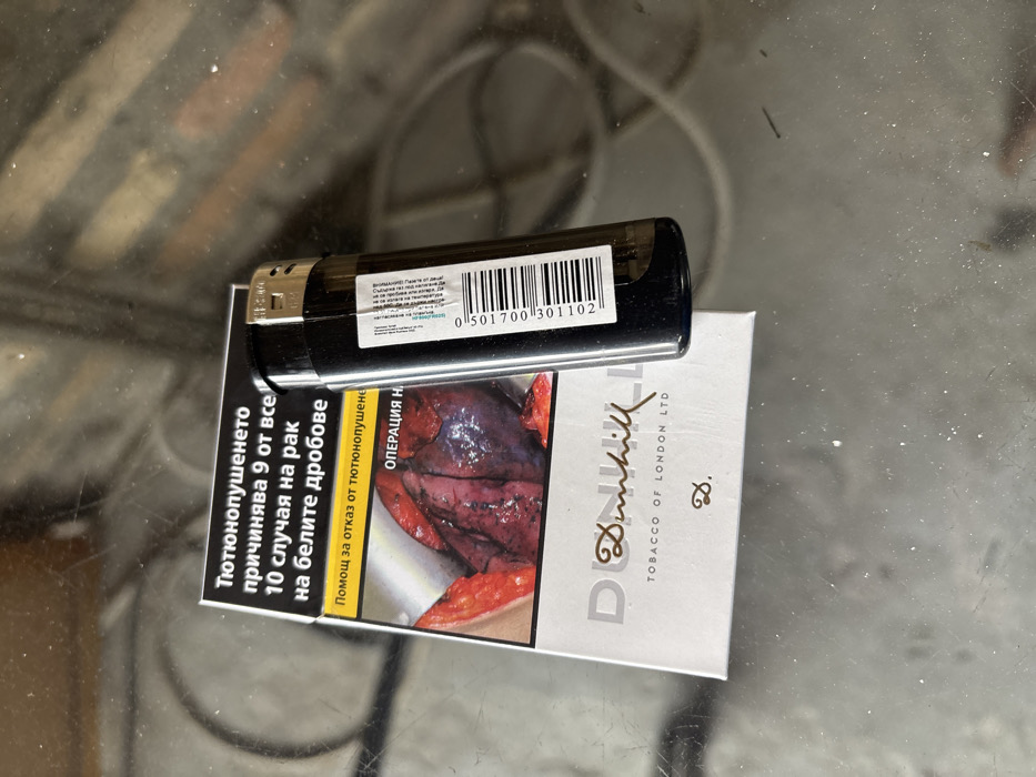 - "A white Dunhill cigarette pack and a black disposable lighter are resting on a reflective, lightly dusted surface in Beloslav, Bulgaria" by FM-qnwRG2, licensed under CC BY 4.0
