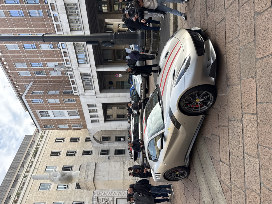 - "The image depicts an urban gathering in Piazza Affari, Milan, Italy, centered around several luxury and classic automobiles" by FM-UaKXZ2, licensed under CC BY 4.0