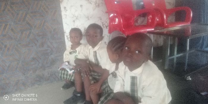 The image displays four young children situated indoors in Lokoja, Nigeria