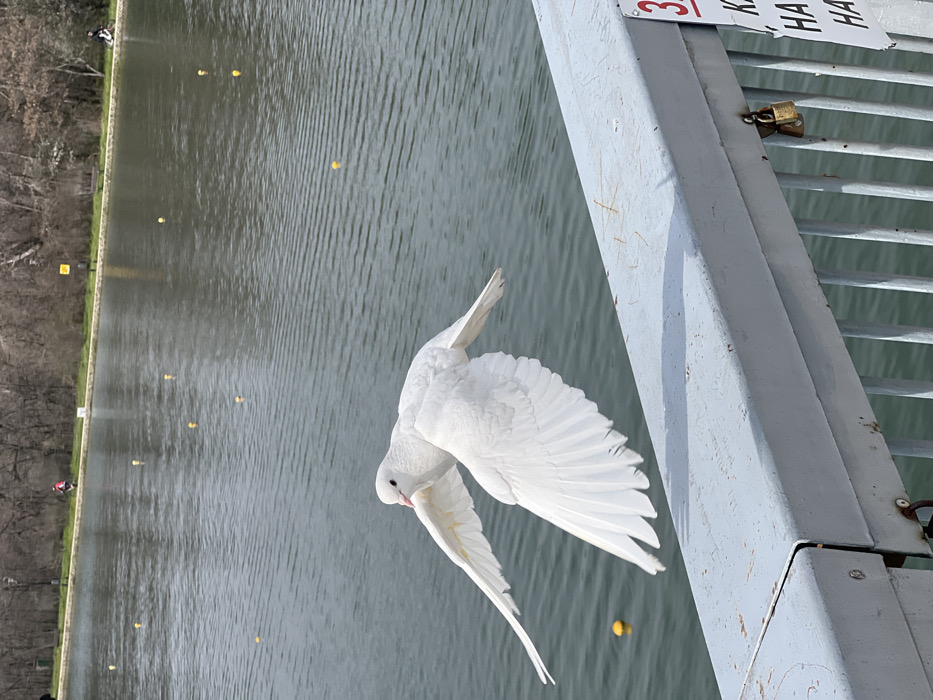 - "The image captures a pure white dove in mid-flight over the Plovdiv Rowing Canal in Plovdiv, Bulgaria" by FM-1zQu63, licensed under CC BY 4.0