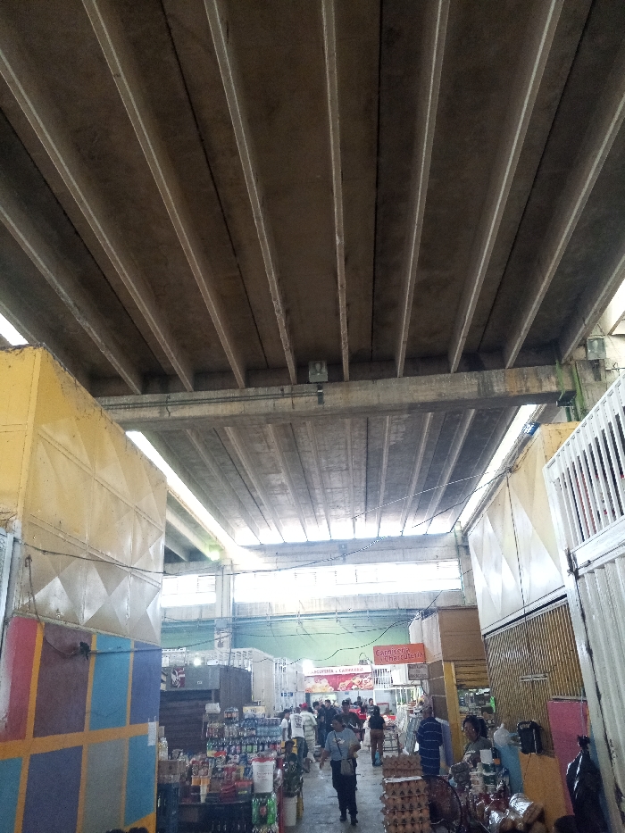 - "The image depicts an active indoor market situated beneath a large, ribbed concrete overpass structure in Cumana, Venezuela" by FM-qEkv12, licensed under CC BY 4.0