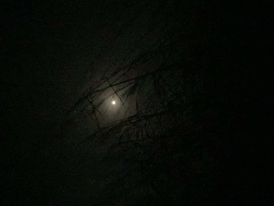 - "A night scene features the moon, obscured by the branches of a tree" by FM-6XMFv1, licensed under CC BY 4.0
