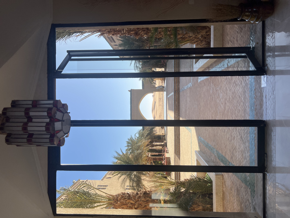 - "The image, taken from an indoor perspective, looks out through a dark-framed glass doorway, partially open on the right, into a sunlit outdoor courtyard in Rissani, Morocco" by FM-t80Kg1, licensed under CC BY 4.0