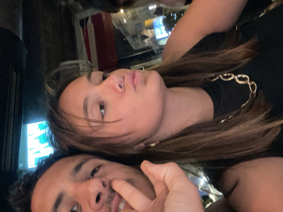 - "The image is a close-up, informal photograph of two individuals, primarily focusing on their faces and upper torsos, taken in a dimly lit, urban environment at night" by FM-T4Ql53, licensed under CC BY 4.0