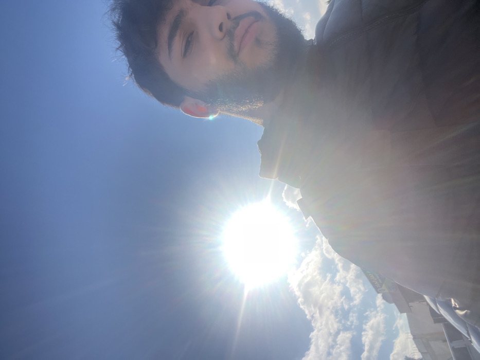 - "An outdoor photograph captures a male individual positioned in the lower right and center, his left side partially obscured by strong sun glare and lens flare" by FM-NiDCC3, licensed under CC BY 4.0