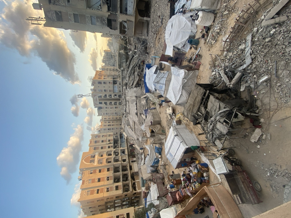 - "The image depicts a devastated urban landscape in Khan Yunis, Palestinian Territory, under the late afternoon or early evening sky" by FM-U9GOy1, licensed under CC BY 4.0