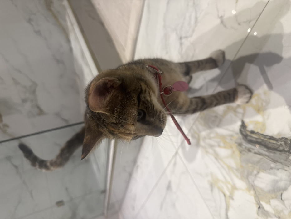 - "A domestic cat is observed standing on a polished marble floor within an indoor environment in Durban, South Africa" by FM-dJ3ZE2, licensed under CC BY 4.0