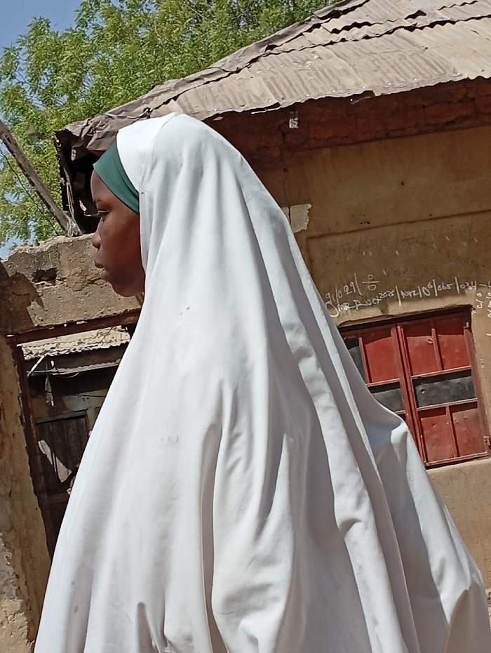 In the city of Gwagwarwa, Nigeria, a person, likely a young female, is captured in a side profile, facing left