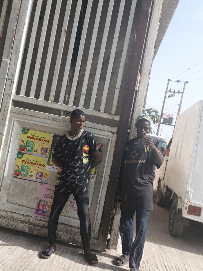 Two young males stand outdoors in Fagge C, Nigeria, under bright daylight