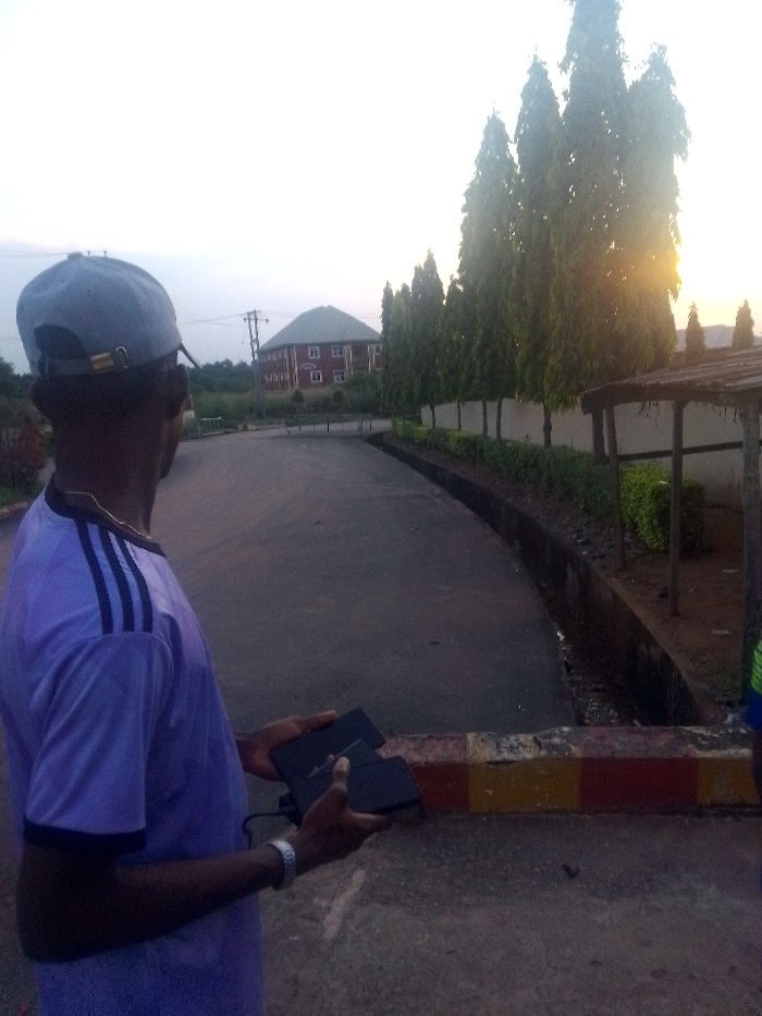 An outdoor scene in Egbagu, Nigeria, captured in late afternoon or early evening light