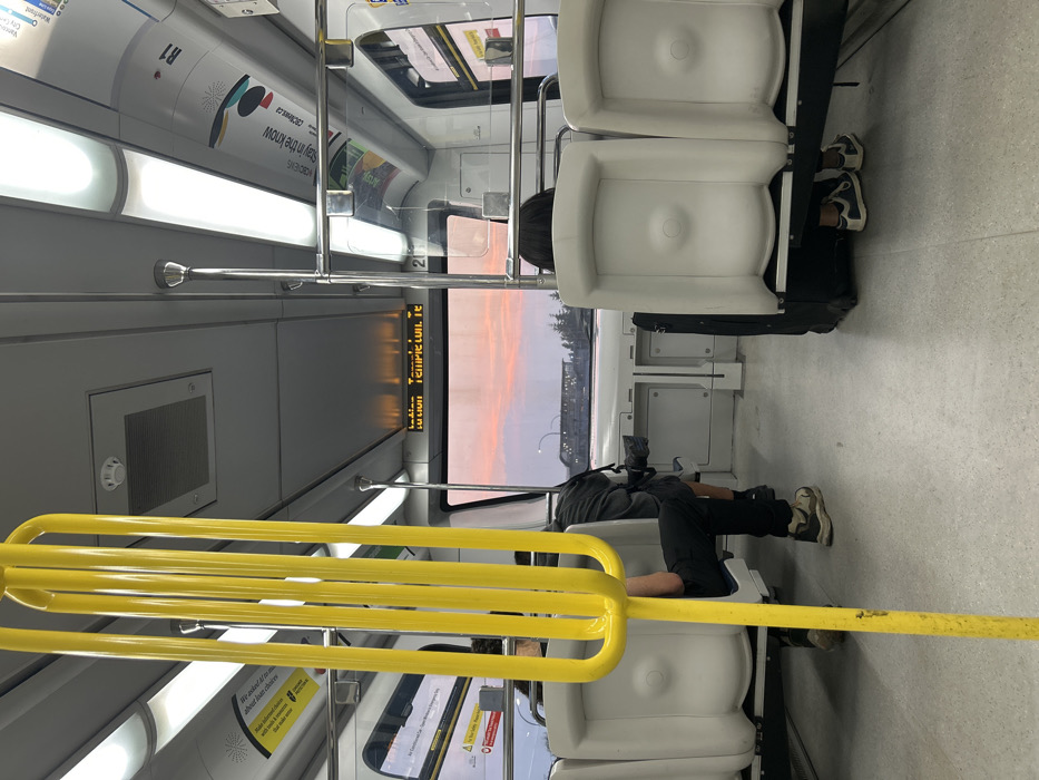 - "The image depicts the interior of a SkyTrain car, identified as being at or near Templeton Station in Richmond, British Columbia, Canada, indicated by the partial text "tion Templeton Te" on the front overhead LED display" by FM-p02Wp2, licensed under CC BY 4.0