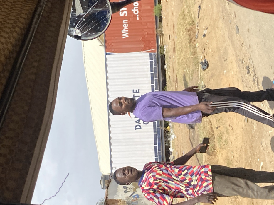 The scene depicts an outdoor environment in Barakin Akawo, Nigeria, observed from within a vehicle