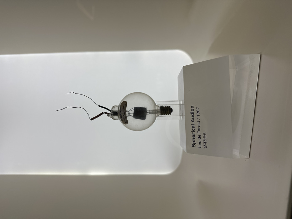 - "A spherical Audion vacuum tube, approximately 10 cm tall, is centrally displayed on a white, angled plinth" by FM-e0TMf1, licensed under CC BY 4.0
