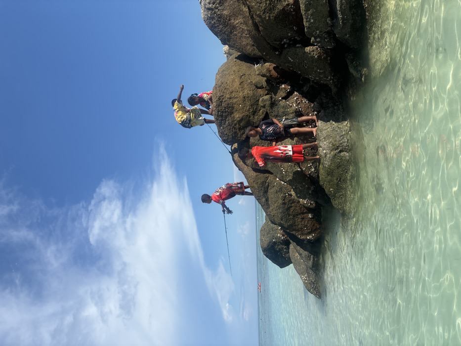 - "Five children are present on a rocky shoreline in Ban Ko Li Pe, Thailand, under a clear blue sky with scattered white clouds" by FM-bmo3E3, licensed under CC BY 4.0