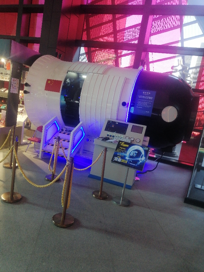 - "An indoor scene in Fengtai District, China, displays a large, cylindrical space capsule simulator" by FM-1OS812, licensed under CC BY 4.0