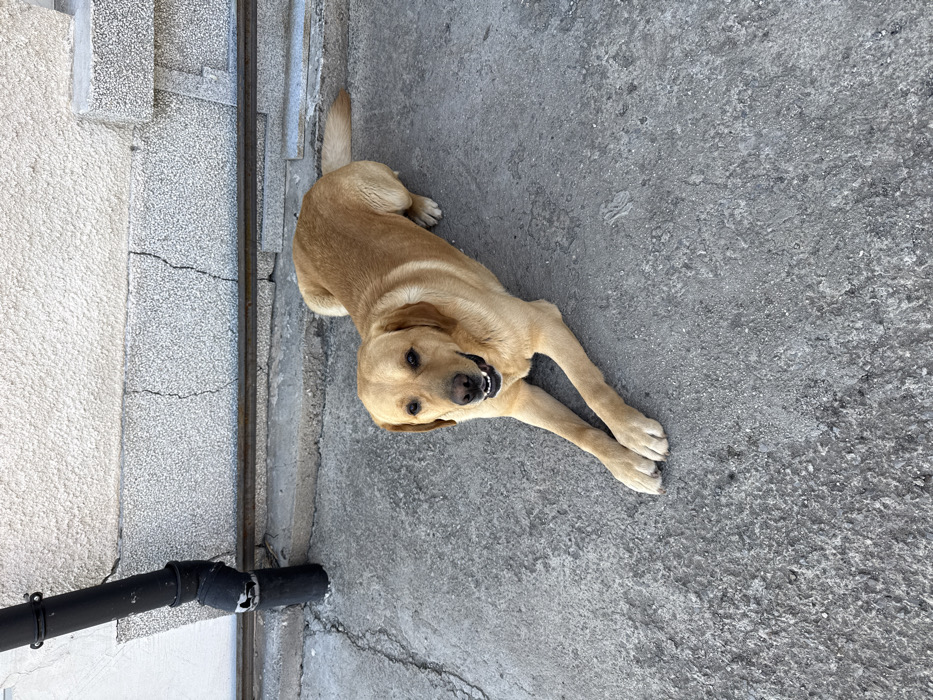 - "A light golden Labrador Retriever dog is observed lying on a textured, grey concrete surface in Voluyak, Bulgaria" by FM-a3Pa42, licensed under CC BY 4.0
