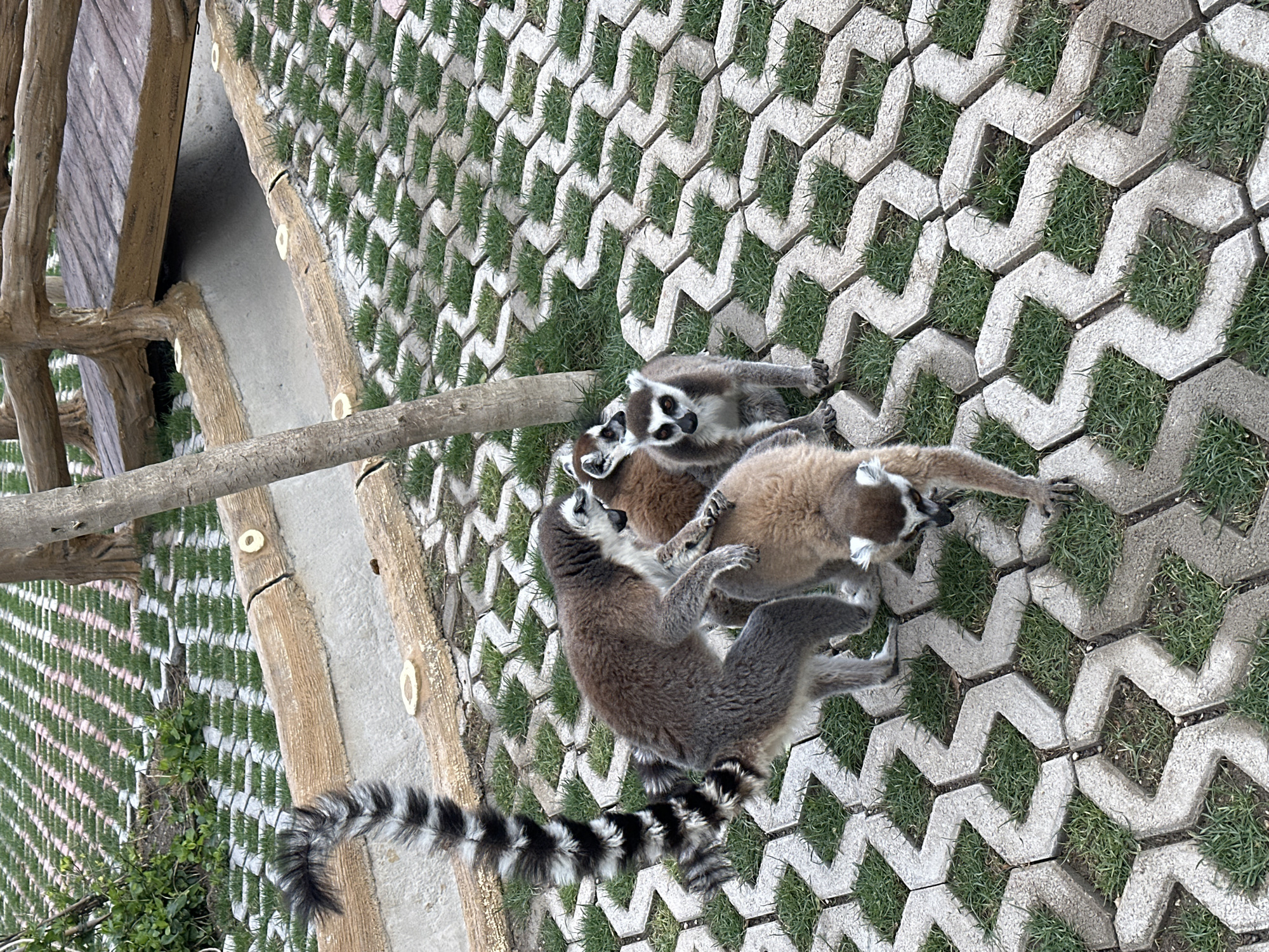- "The image depicts a group of lemurs on a paved area with grass growing in between the pavers" by FM-kBeqb2, licensed under CC BY 4.0