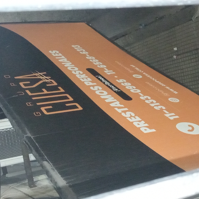 - "A rectangular sign features a black area with the orange text "GRUPO CUESA"" by FM-mQzaJ3, licensed under CC BY 4.0