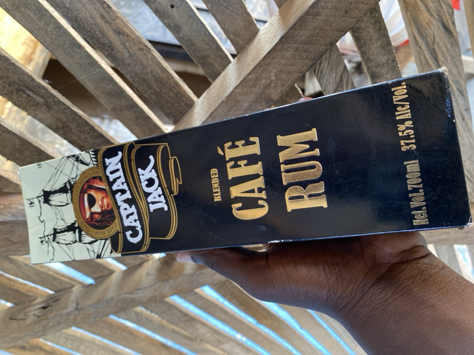 - "The image, taken in Riyom, Nigeria, displays a dark-skinned hand holding a rectangular carton of "CAPTAIN JACK BLENDED CAFÉ RUM" by FM-4CGI82, licensed under CC BY 4.0