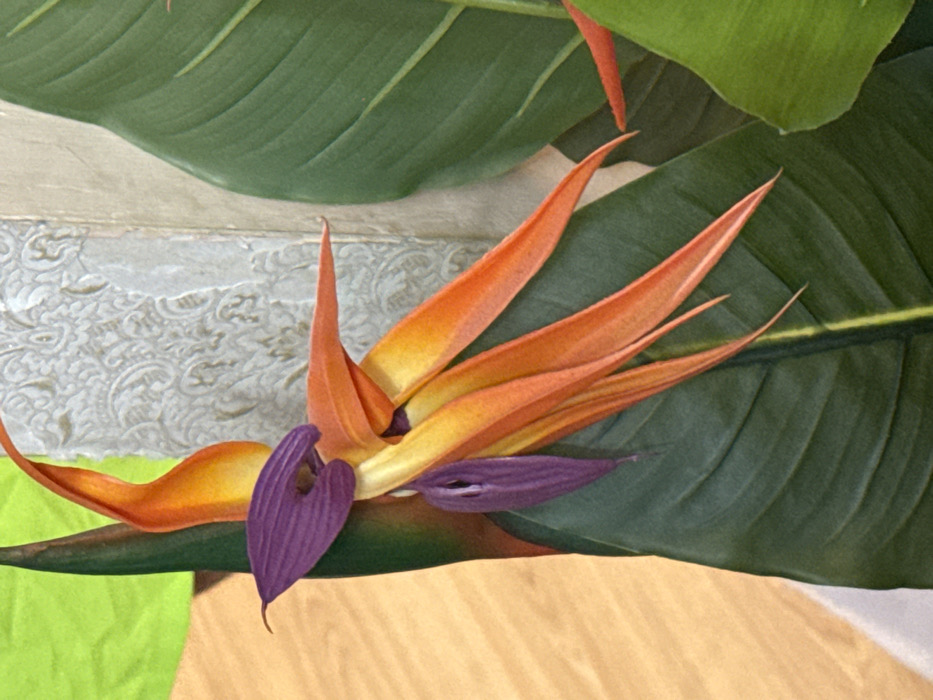 - "A close-up photograph displays an artificial Strelitzia flower, known as Bird of Paradise, centered in the frame" by FM-fYcxL2, licensed under CC BY 4.0