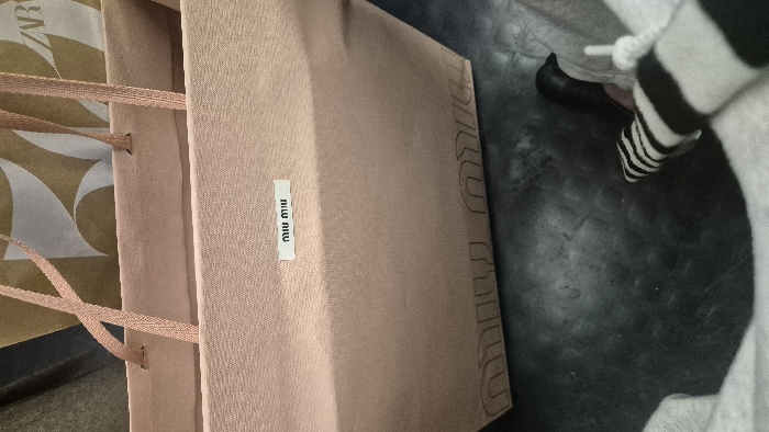 - "A first-person, downward-angled photograph captures two shopping bags resting on a dark grey, textured floor" by FM-O7Vkg2, licensed under CC BY 4.0