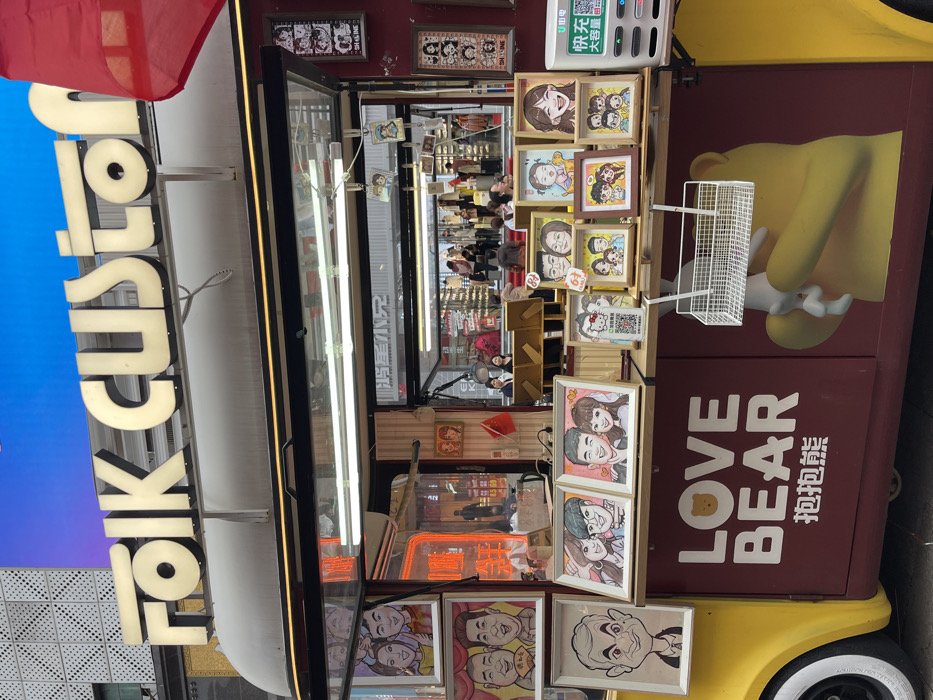 - "A vendor stall, displaying custom cartoon portraits, operates on a commercial street in Zhengzhou, China" by FM-oJoph1, licensed under CC BY 4.0