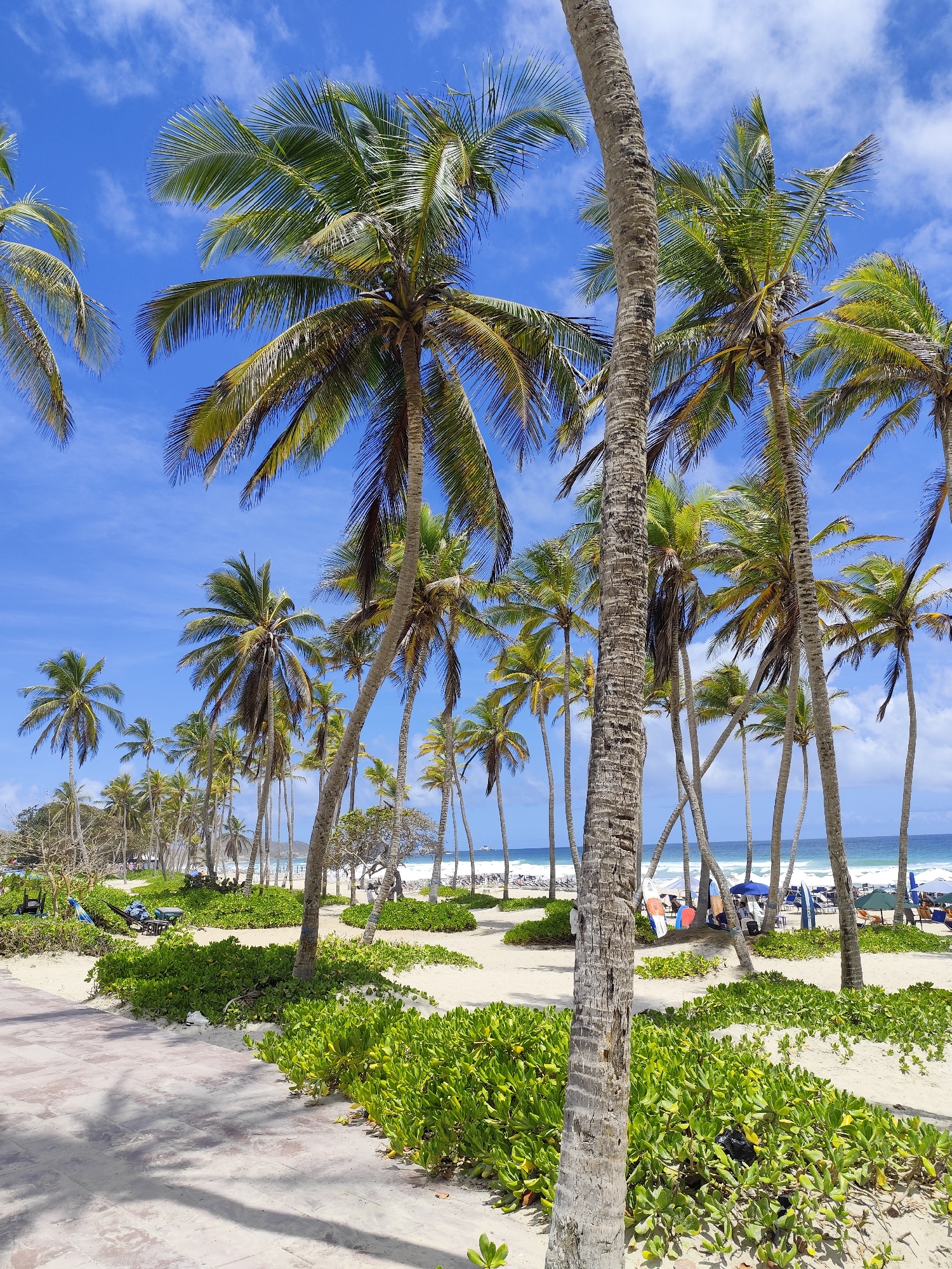 - "The image presents a scene at Playa El Agua, Venezuela, showcasing a beach with numerous tall palm trees under a bright blue sky with scattered clouds" by FM-XHI3Q2, licensed under CC BY 4.0