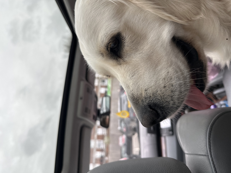 - "A cream-colored Golden Retriever dog is prominently featured, positioned inside a vehicle in Epping Forest, United Kingdom" by FM-XMDnw2, licensed under CC BY 4.0