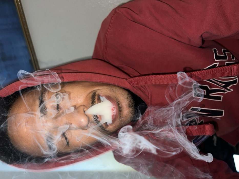 - "A close-up image depicts a male individual, appearing to be in his 20s or 30s, exhaling a dense plume of white smoke or vapor" by FM-Gn7EC2, licensed under CC BY 4.0