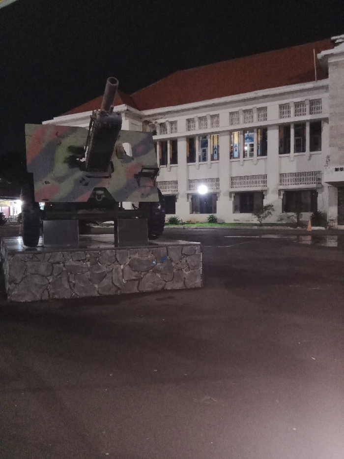 - "The image displays an exterior nighttime scene in Semarang, Indonesia, centered on a military artillery piece positioned in front of a colonial-era building" by FM-xHTx62, licensed under CC BY 4.0