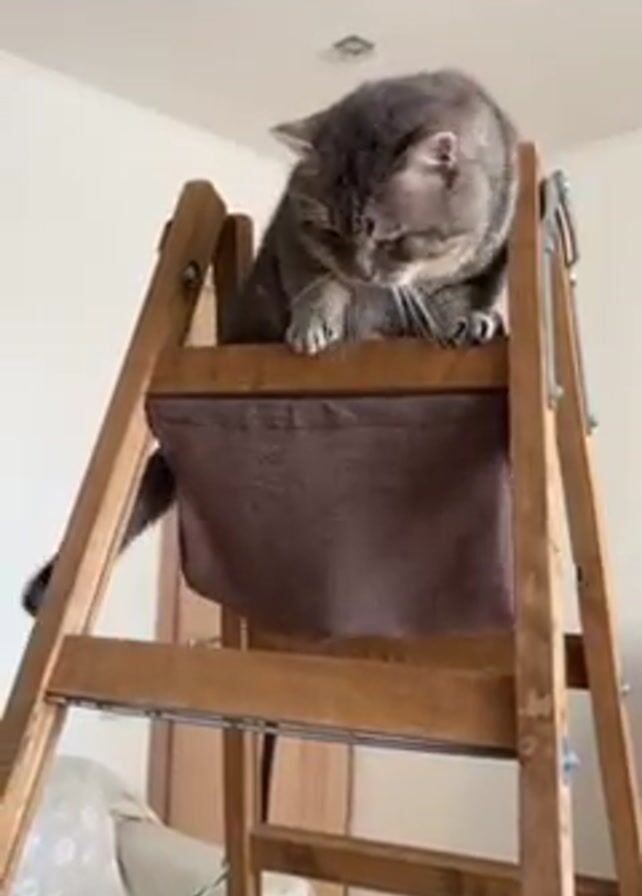 - "A gray tabby cat climbs down a wooden ladder" by FM-aeu8u2, licensed under CC BY 4.0