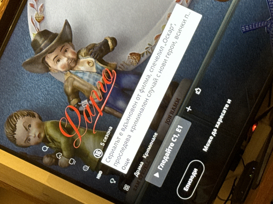 The image displays a television screen in a residential setting in Sofia, Bulgaria, exhibiting a streaming service interface