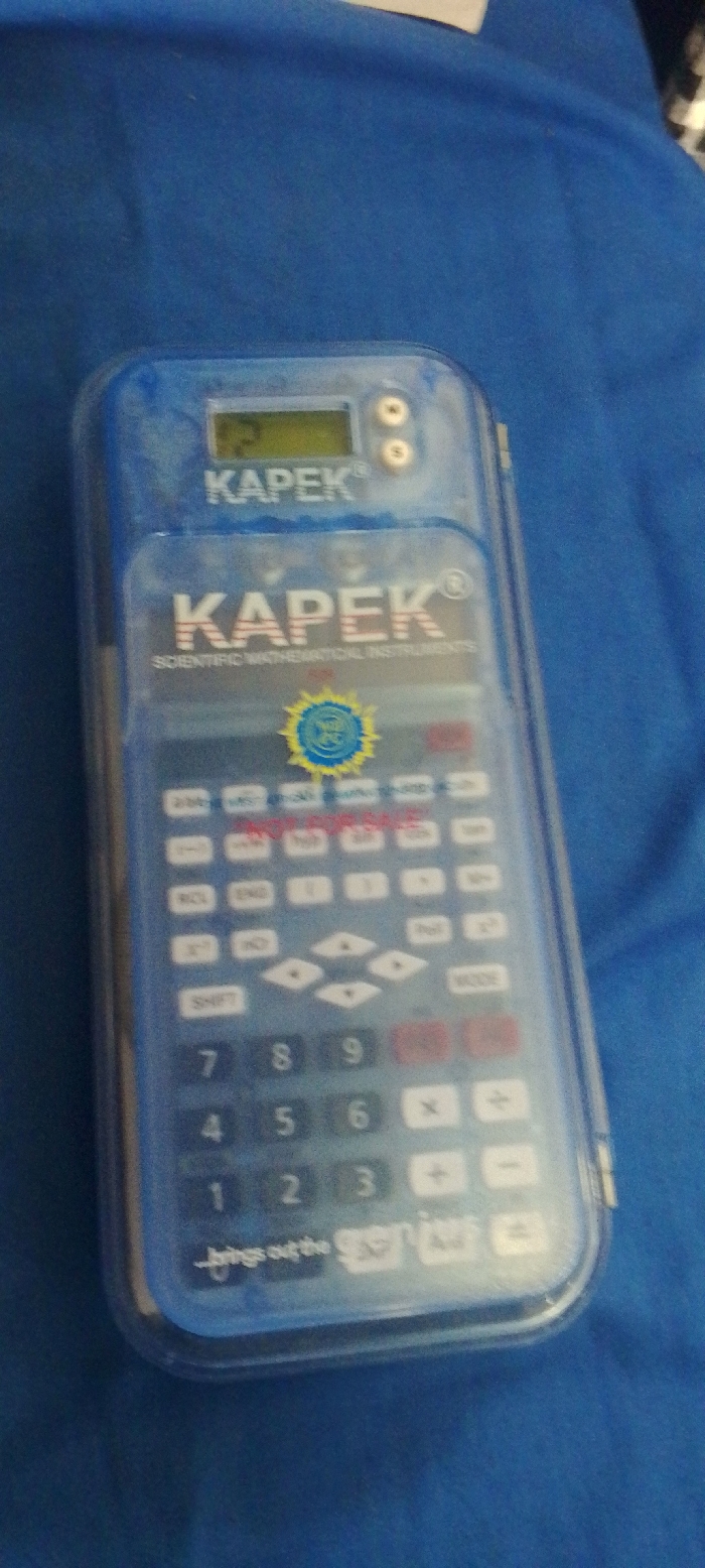 In the city of Unknown, Unknown, a KAPEK scientific calculator rests on a royal blue fabric surface