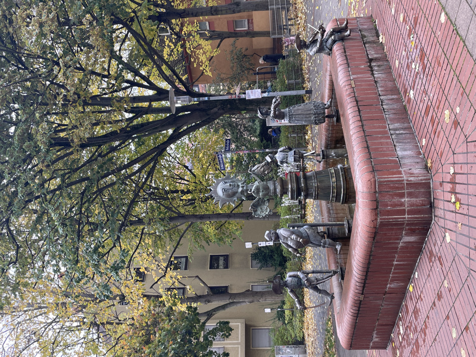 - "A wide-angle, slightly elevated perspective image displays the "Schützenbrunnen" (Shooter's Fountain) located at the intersection of Schützenstraße and Balderichstraße in Nuremberg, Germany, under an overcast sky during autumn" by FM-UR63Y2, licensed under CC BY 4.0